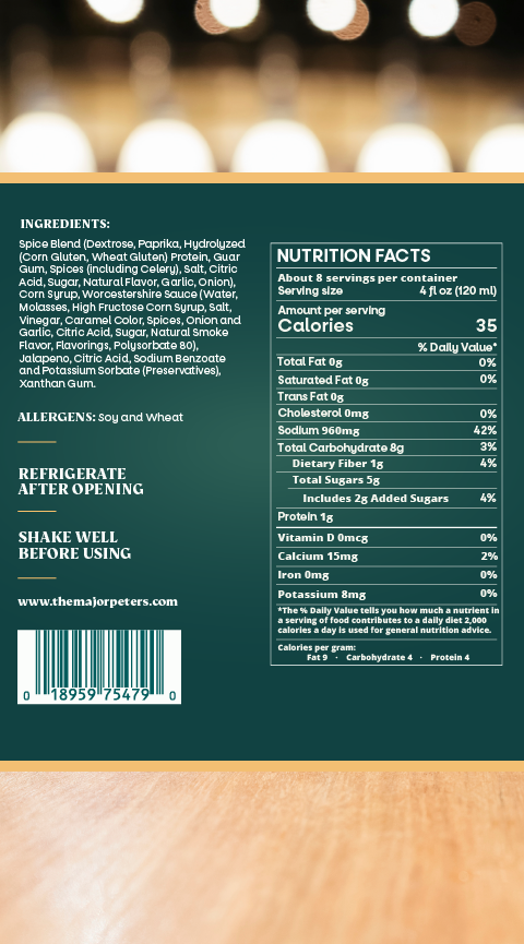 Get ready to turn up the heat with the Major Peters Hot & Spicy Bloody Mary Mix. This bold blend offers exhilarating heat, bringing a blast of excitement to your taste buds with every sip.