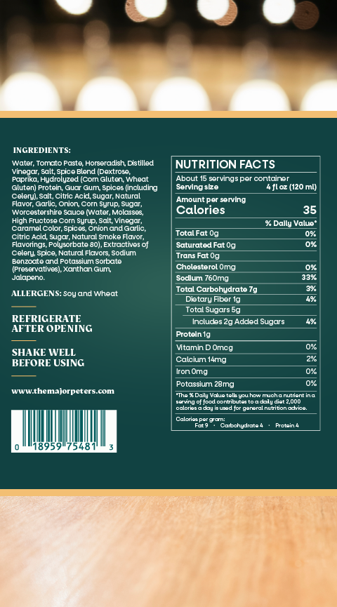 Get ready to join the ranks of cocktail connoisseurs with Major Peters’ The Works Bloody Mary Mix. This bold and delicious blend transforms ordinary moments into vibrant, joyful, and majorly alive experiences.
